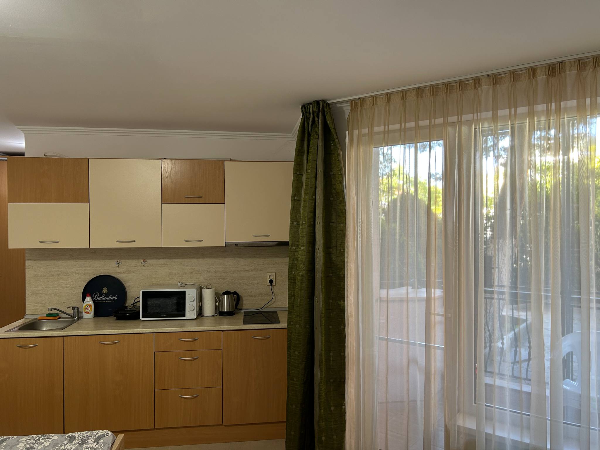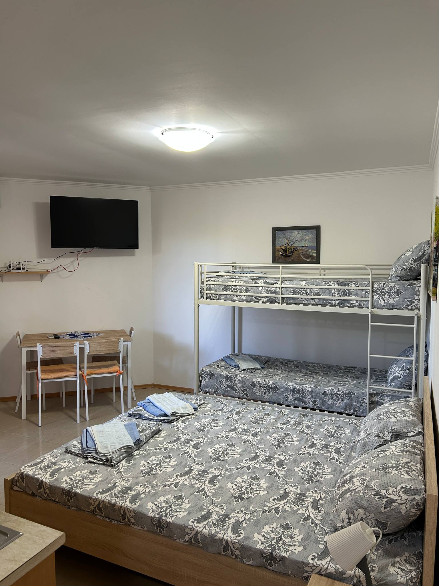 A stúdió jellegű apartman 4 fő számára kényelmes, barátságos és könnyen átlátható térrel. A lakás teljesen felszerelt: konyha, klíma, gyors WiFi, mosógép és síkképernyős TV gondoskodik az otthonos hangulatról és a gondtalan pihenésről. Az apartmanból a közvetlen medencekilátás külön élményt nyújt: amíg a gyerekek a vízben lubickolnak, a szülők a teraszról vagy a közös térből figyelhetik őket.